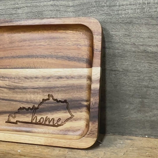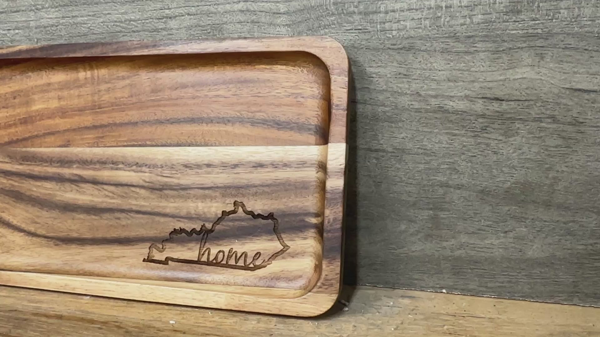 Small catch all tray for your end table or night stand. Made from solid acacia wood.